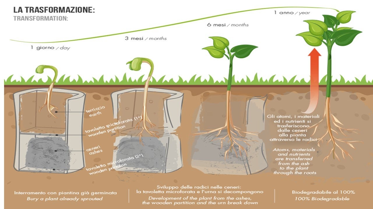 Accoglie il ricordo, prepara la rinascita e diventa parte di un processo naturale che continua nel tempo.